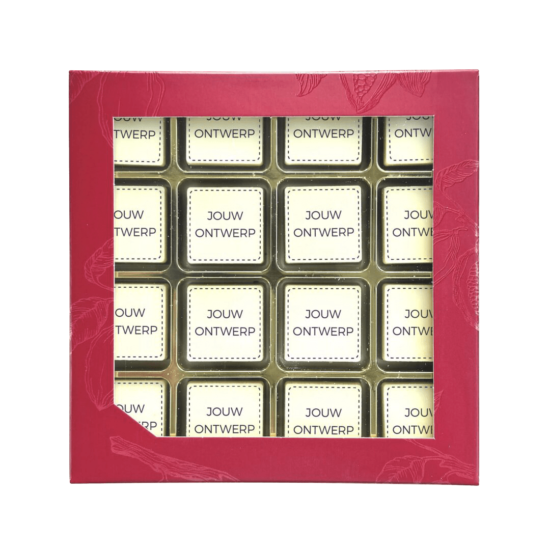 Bestellen is eenvoudig: upload je ontwerp en wij verzorgen de productie van jouw chocolade met logo. Werk je met meerdere visuals? Vanaf 100 doosjes kun je verschillende designs binnen één geschenkdoos toepassen voor extra flexibiliteit en impact.