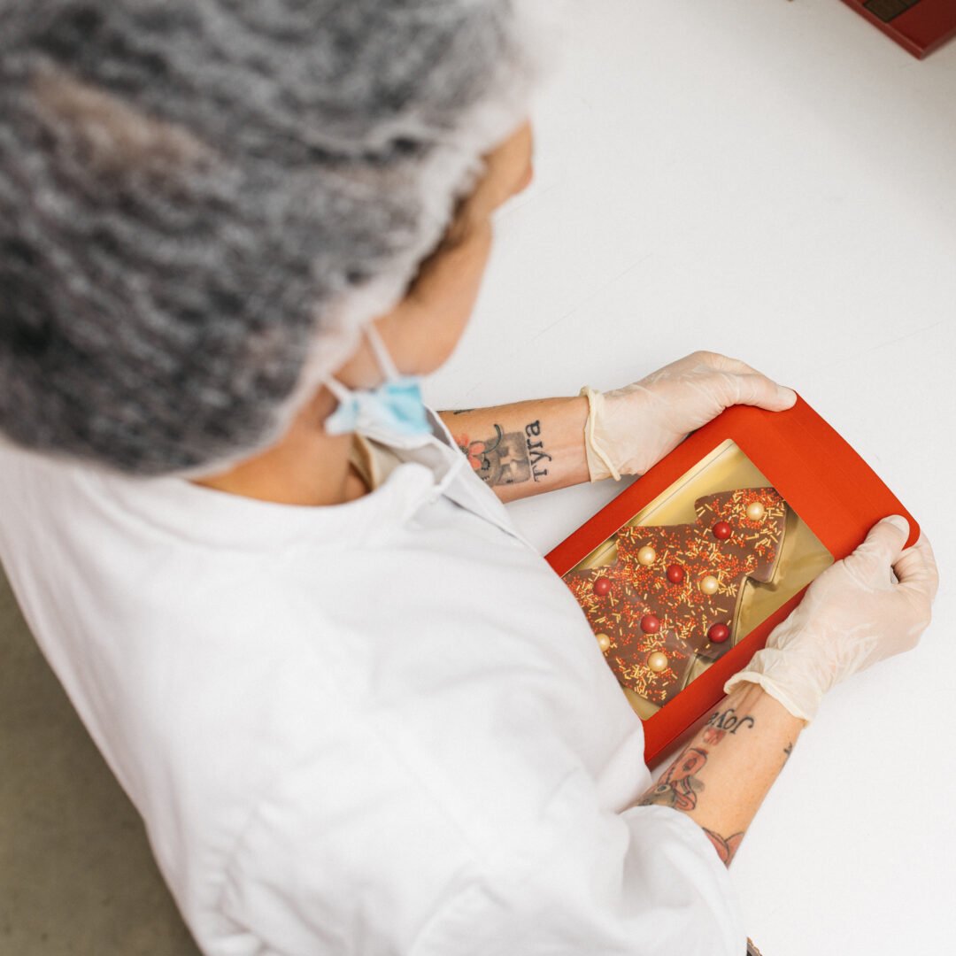 Op zoek naar een chocolade geschenk dat alle andere sintattenties overtreft? Kies dan voor een chocolade mijter voorzien van een geheel eigen design, gemaakt van onze eigen duurzaam geproduceerde (Cocoa Horizons) chocoladerecepten van het Belgische topmerk Barry Callebaut. De mijter bestaat uit een heerlijke melkchocolade plak (150 gram) voorzien van een marsepeinen schild (25 gram) met daarop jouw afbeelding/design, wordt verpakt in een rode vensterdoos.