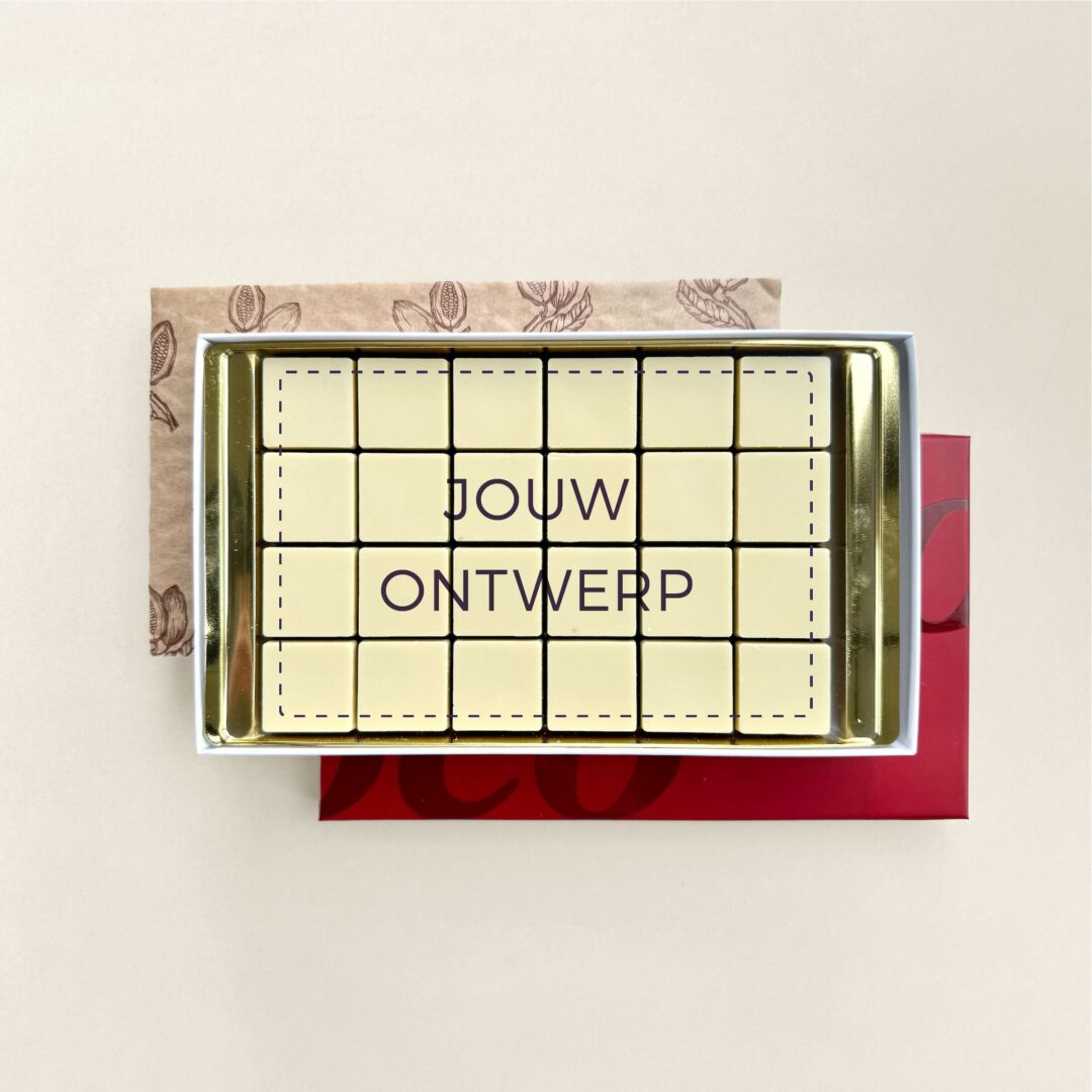 Dein Foto auf Schokolade wird auf 24 Schokoladenwürfel verteilt, die aus einer Mischung aus Milch- und weißer Schokolade bestehen. Ob Teamfoto, Kollege, Familienfoto oder ein besonderer Moment – deine Erinnerung wird auf Schokolade gestochen scharf zum Leben erweckt.