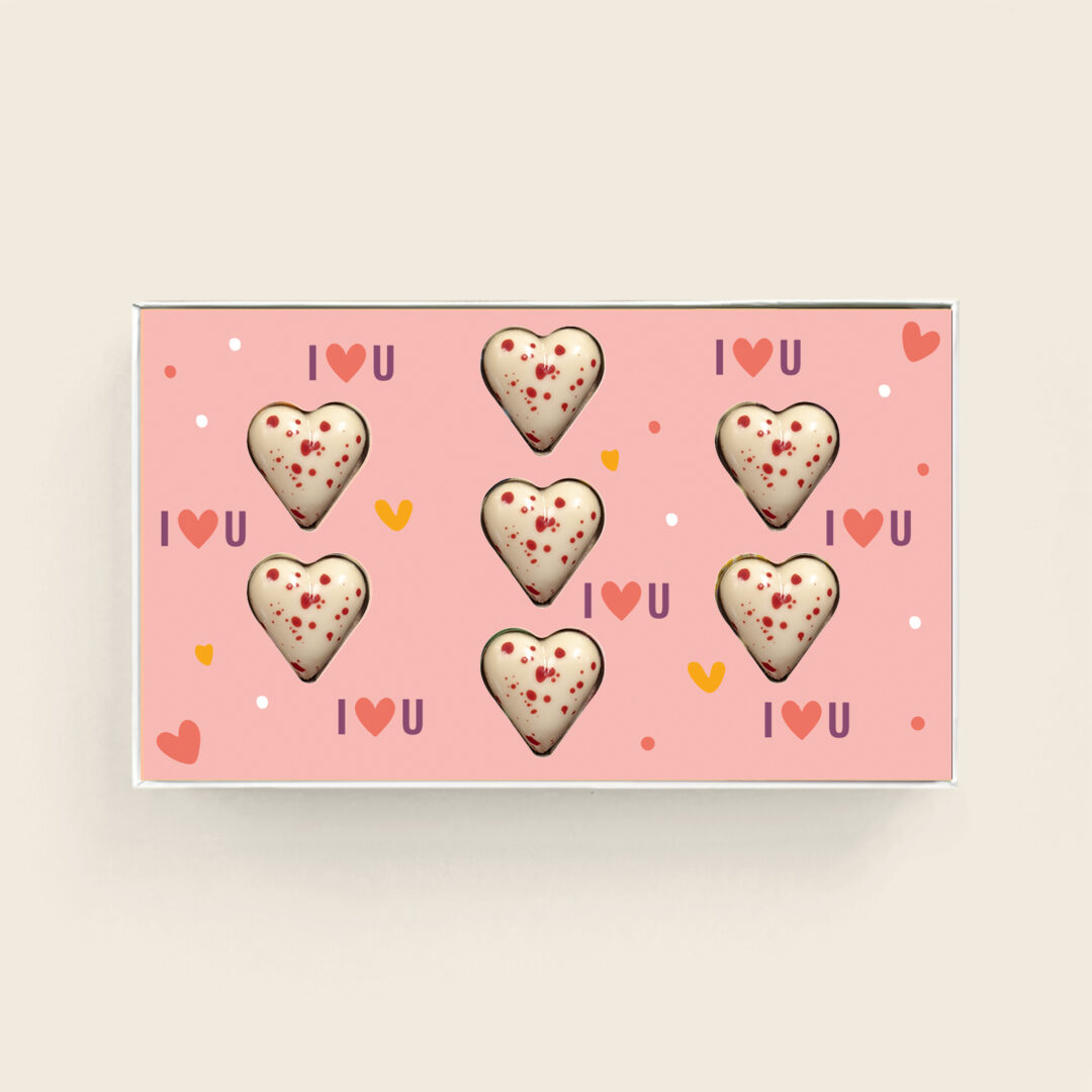 Gevulde chocolade hartjes wit | I love U – 7 keer liefde met een zachte kern