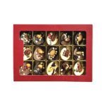 Een paas-verrassing in een wel héél mooie uitvoering. Massieve chocolade paaseitjes, bestrooid met luxe nootjes, fruit en ander lekkers. Wat kan je jouw relaties beter sturen?