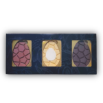 Paasei parade. Drie smakelijke paaseieren in melkchocolade, witte chocolade én puur. Voor elk wat wils. Een geschenk voor de hele afdeling of het hele gezin.